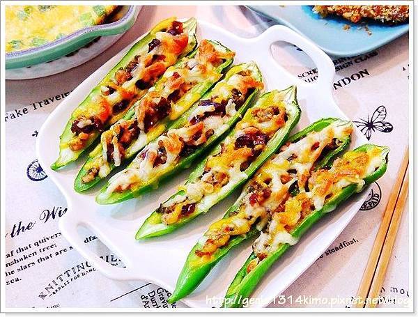 步驟4:全部都塞好之後~把焗烤用雙色起司均勻撒在上面~
